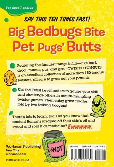 Featuring the funniest things in life––like barf, drool, mucus, pus, and gas––Twisted Tongues is an excellent collection of more than 150 tongue twisters, all sure to gross out your parents.