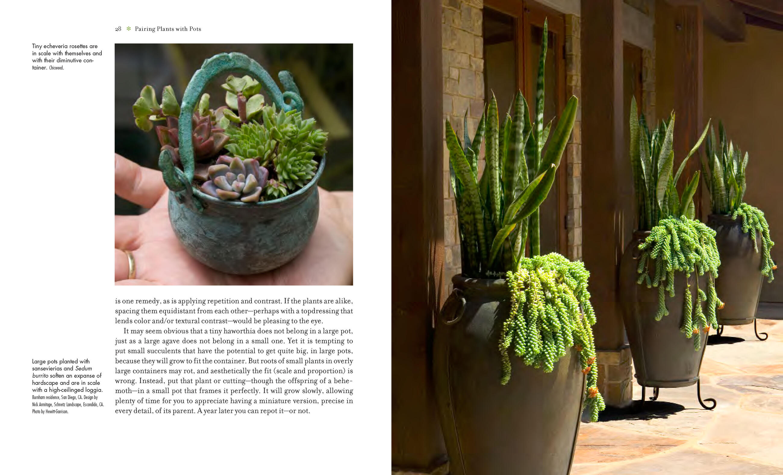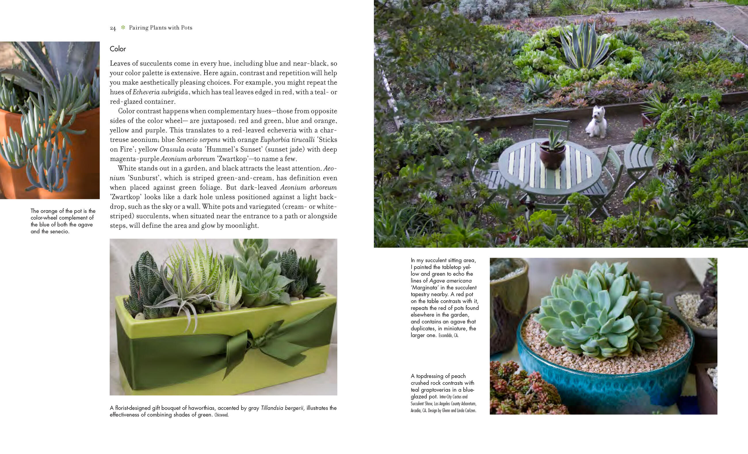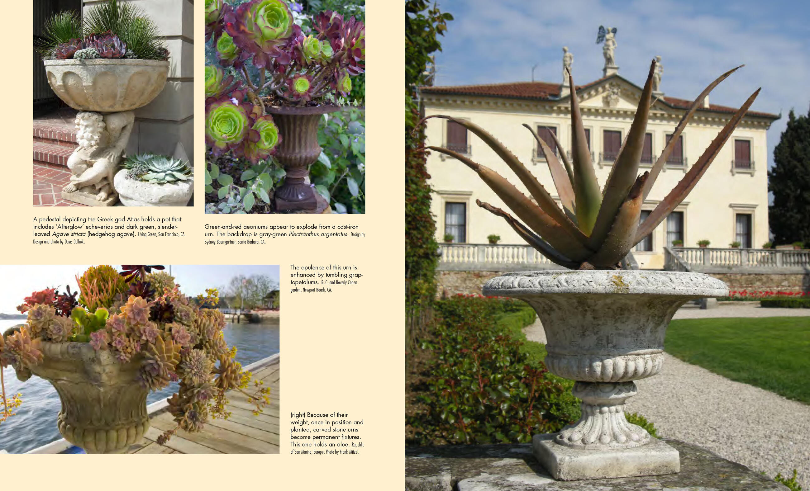 “Seeing how gardeners turned birdbaths and tiered water fountains into flowing arrangements of sedum, aeonium, echeveria and crassula struck me as the perfect comeback to those who say succulents are boring.” I>Los Angeles Times
