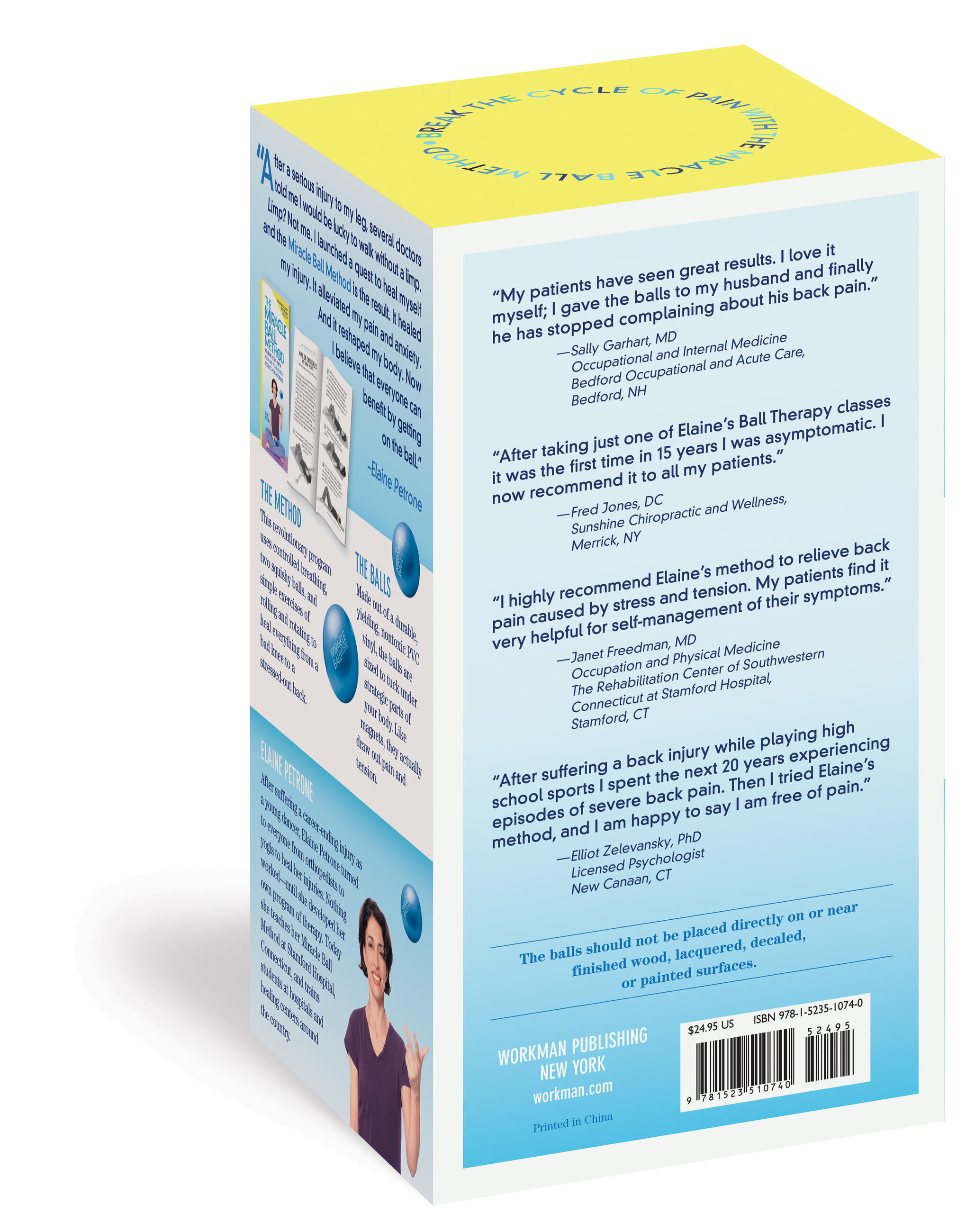 Fitness “Elaine’s method greatly relaxes my tight neck muscles and helps to elongate the spine. I highly recommend it.” ––Christine M. Metz, M.D., Internal Medicine, Gilmore Memorial Hospital, Armory, MS“My patients have seen great results. I love it myself; I gave the balls to my husband, and he has finally stopped complaining about his back pain.” –Sally Garhart, M.D., Occupational and Internal Medicine, Bedford Occupational and Acute Care, Bedford, NH“After taking just one of Elaine’s ball therapy classes, I was asymptomatic for the first time in 15 years. I now recommend it to all of my patients.” –– Fred Jones, D.C., Sunshine Chiropractic and Wellness, Merrick, NY“I highly recommend Elaine’s method to relieve back pain caused by stress and tension. My patients find it very helpful for self-management of their symptoms.” ––Janet Freedman, M.D., Physical Medicine and Rehabilitation, The Rehabilitation Center of Southwestern Connecticut at Stamford Hospital, Stamford, CT