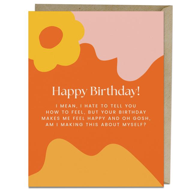 In the best friendships, BOTH people probably feel like they talk about themselves too much. It’s a sign that you both get to speak and share and be fully heard. Unless, of course, you really ARE making it all about you. If that’s the case, you’re gonna need a hilarious card like this one by Nora McInerny.