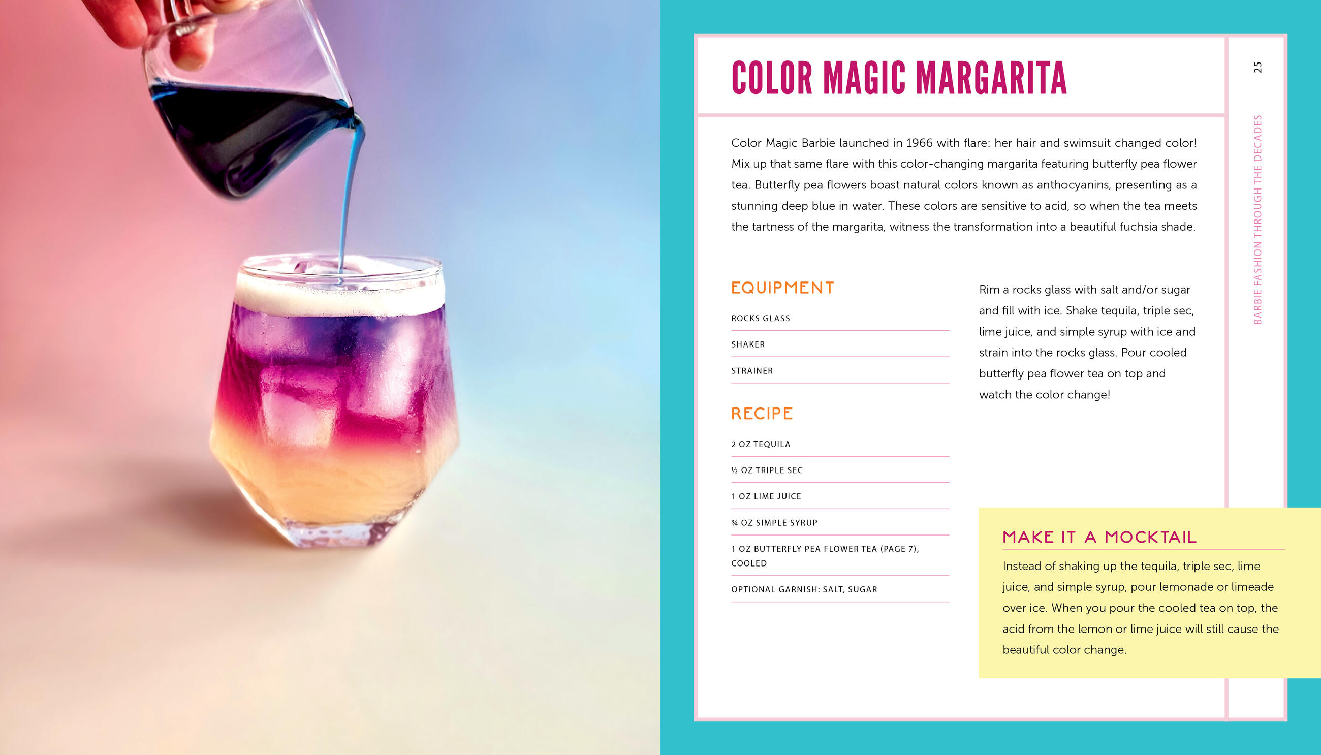 Barbie knows how to celebrate moments, big and small. With this officially licensed recipe book, you can make yourself and your friends delicious drinks to accompany all of your accomplishments. This book is filled with cocktails and mocktails inspired by the one and only Barbie, her iconic looks throughout the years, her signature color, and every corner of her world. Take a look at: