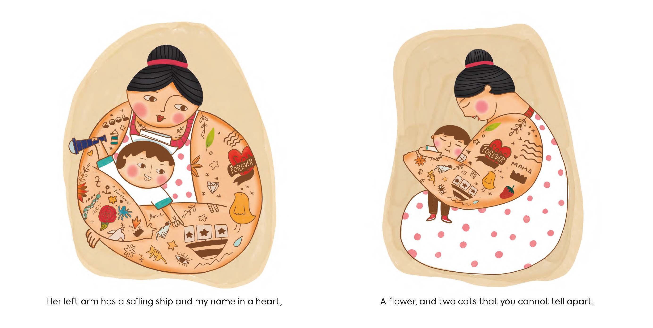 “As the often community-focused illustrations nod to famous works of art… the work celebrates the autonomy and ritual that tattoos represent for one parent who is regarded as nothing short of ‘a masterpiece.’”Publishers Weekly