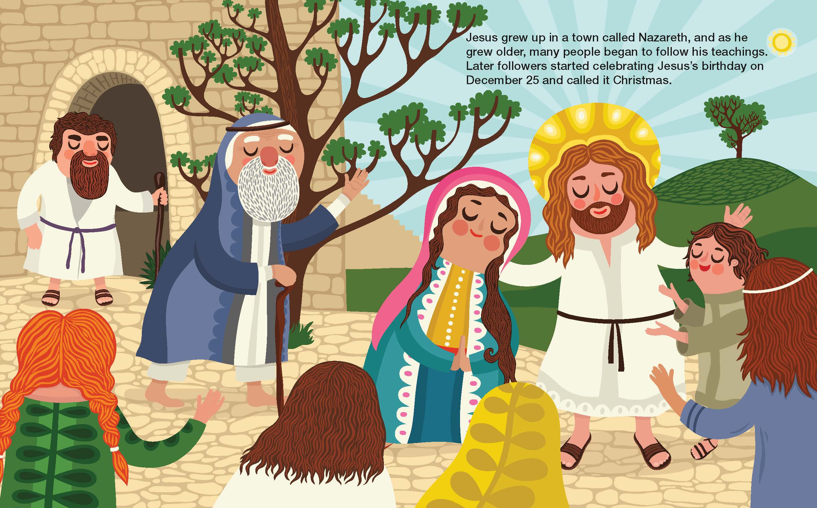A long time ago, in the town of Nazareth, there lived a young woman named Mary. One day, an angel appeared before her and told her that she would give birth to a baby. The baby would be the Son of God, and she would name him Jesus.