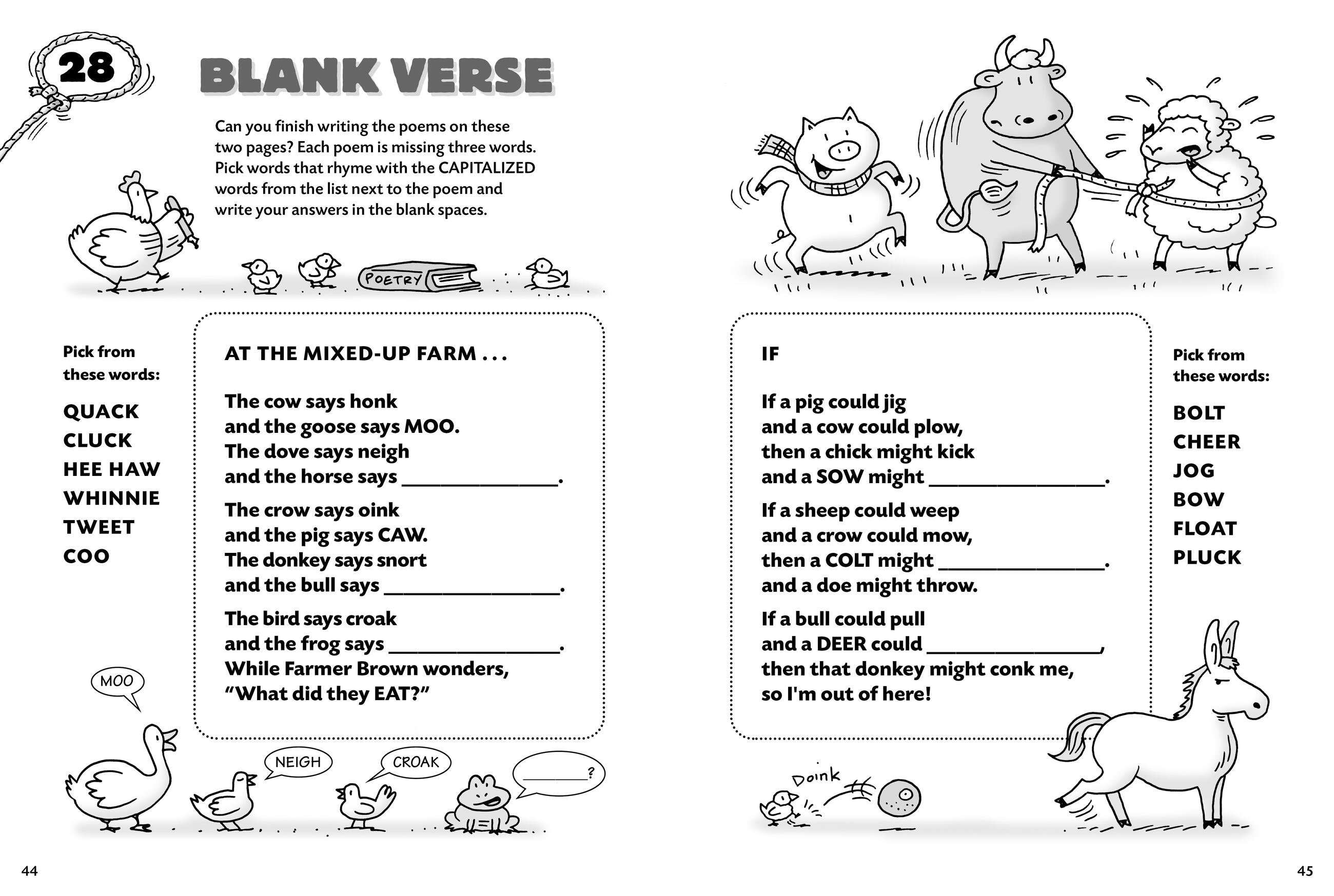 The farm animals are getting up to some fun and games, and they’re looking for kids to join them! Children ages six and up will love these word games, picture puzzles, mazes, jokes, and brain teasers. Crawl through a Worm Squirm, find out how to tell if there are cows in your refrigerator, and use the letters in “Rhode Island Red” to fill in an entire crossword puzzle. Delight in hours of enjoyment packed with pig races, clever riddles, and coloring challenges.