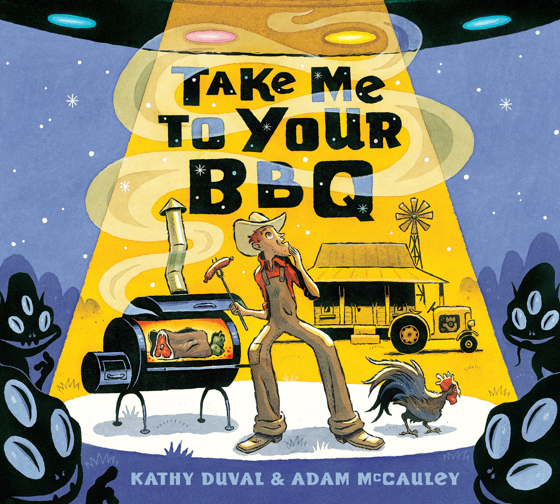 Aliens have landed on Willy’s farm, and they’re not leaving without a square dance and a square meal! So fire up that grill, lay on the barbeque sauce, and snatch up that fiddle. Told in verse, this rollicking story puts a twist on the typical encounter with the third kind. Adam McCauley’s out-of-this-world illustrations match Kathy Duval’s hoe-down rhymes like ribs and taters! Get ready for some extraterrestrial, lip-smacking fun.