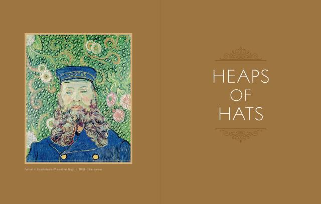 Organized by 13 chapters (Frills and Fringe; Heaps of Hats; City Life), the book offers stickers featuring lesser-known works and the greats, such as Van Gogh’s Almond Blossom, Vermeer’s Girl with a Pearl Earring, Cassatt’s Mother and Child, Van Eyck’s The Arnolfini Portrait, Hokusai’s The Great Wave, and so many more. Accompanying each image is a caption that details the artist, the title of the piece, the medium, and the date created.
