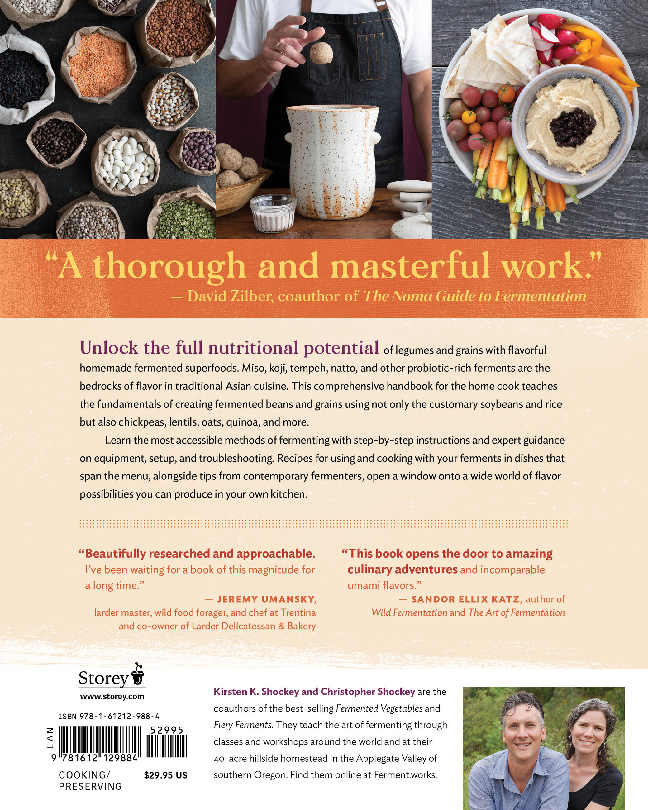 “What an exciting new resource for fermentation enthusiasts! Kirsten and Christopher Shockey explain in clear step-by-step detail classic methods from different parts of Asia for fermenting legumes and grains, as well an innovative new applications. The ferments in this book include some of the most complex, technically demanding, and potentially intimidating, but Kirsten and Christopher demystify them and make them readily accessible for home and restaurant kitchens. This book opens the door to amazing culinary adventures and incomparable umami flavors.” — Sandor Ellix Katz, Author of Wild Fermentation and The Art of Fermentation