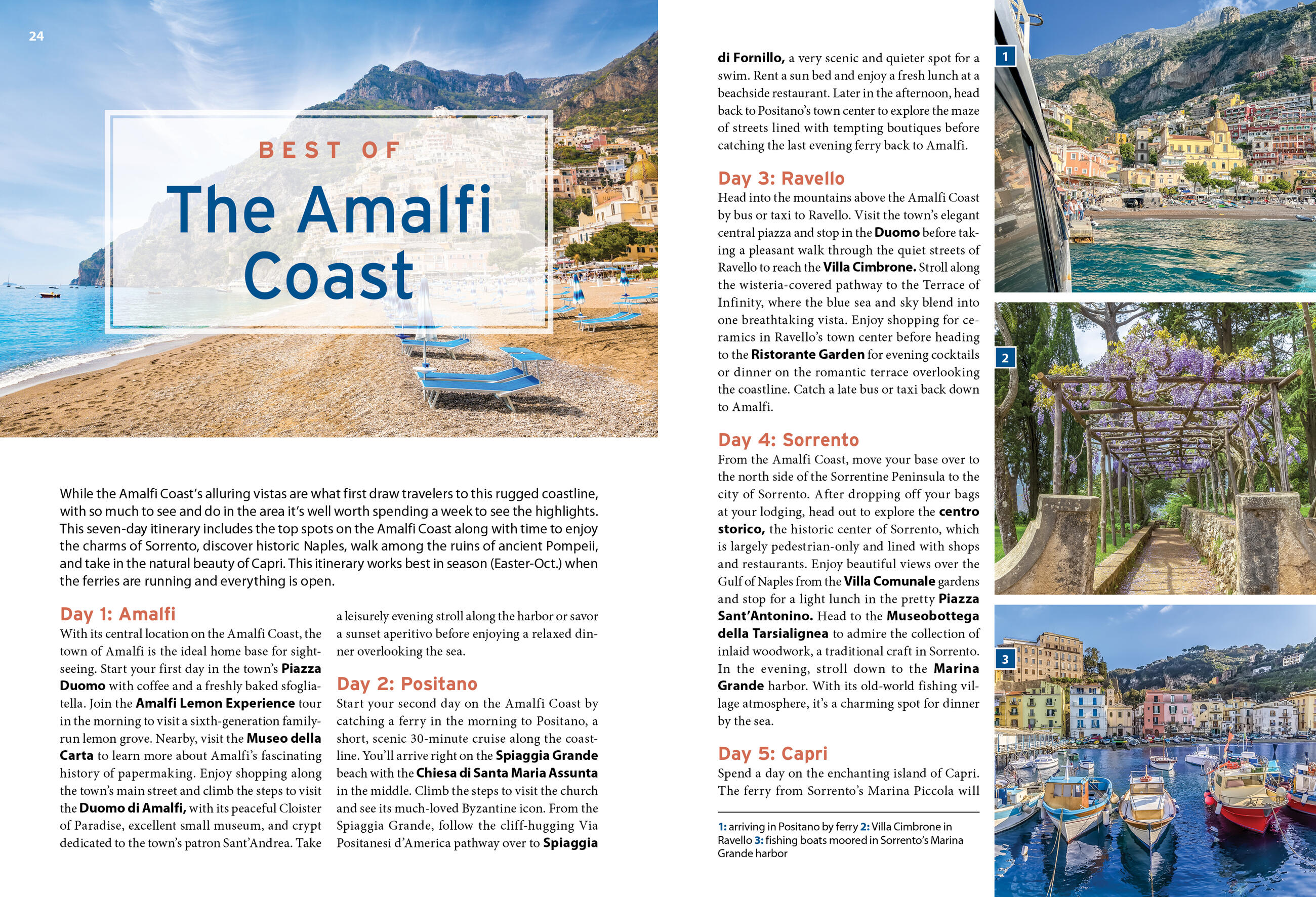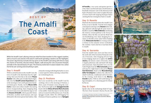 - Flexible itineraries for spending five to seven days on the Amalfi Coast, whether you want to island-hop in the Gulf of Naples or spend your days hiking and sunbathing in Amalfi