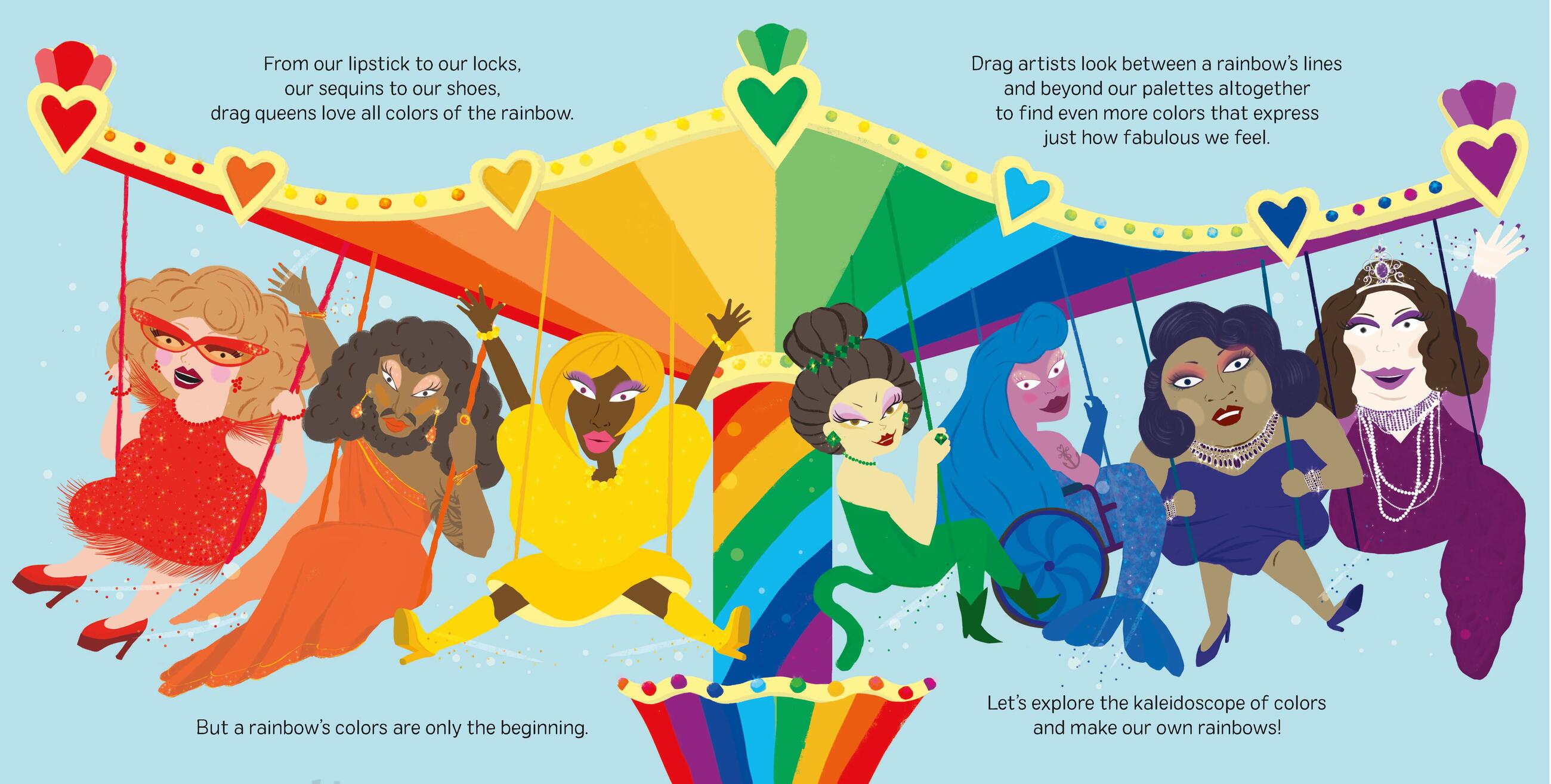 Drag queens love to dance to their own beat, speak their minds, and let their best selves shine. They love all the colors of the rainbow—as well as all the colors beyond!