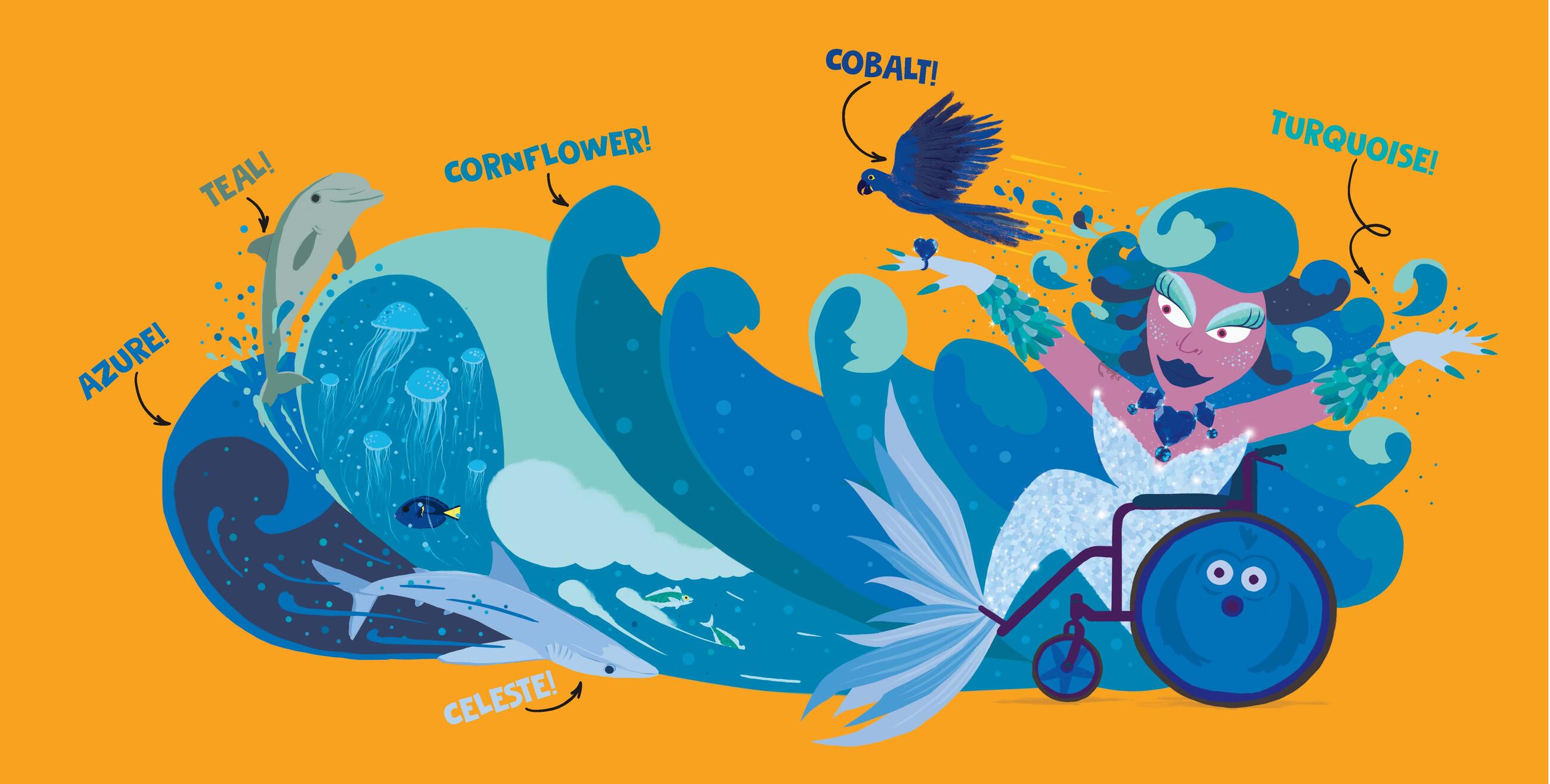 “Fantasy elements and collections of objects representing each color are integrated into the uplifting spreads, which encourage readers to express themselves however they choose.”Publishers Weekly