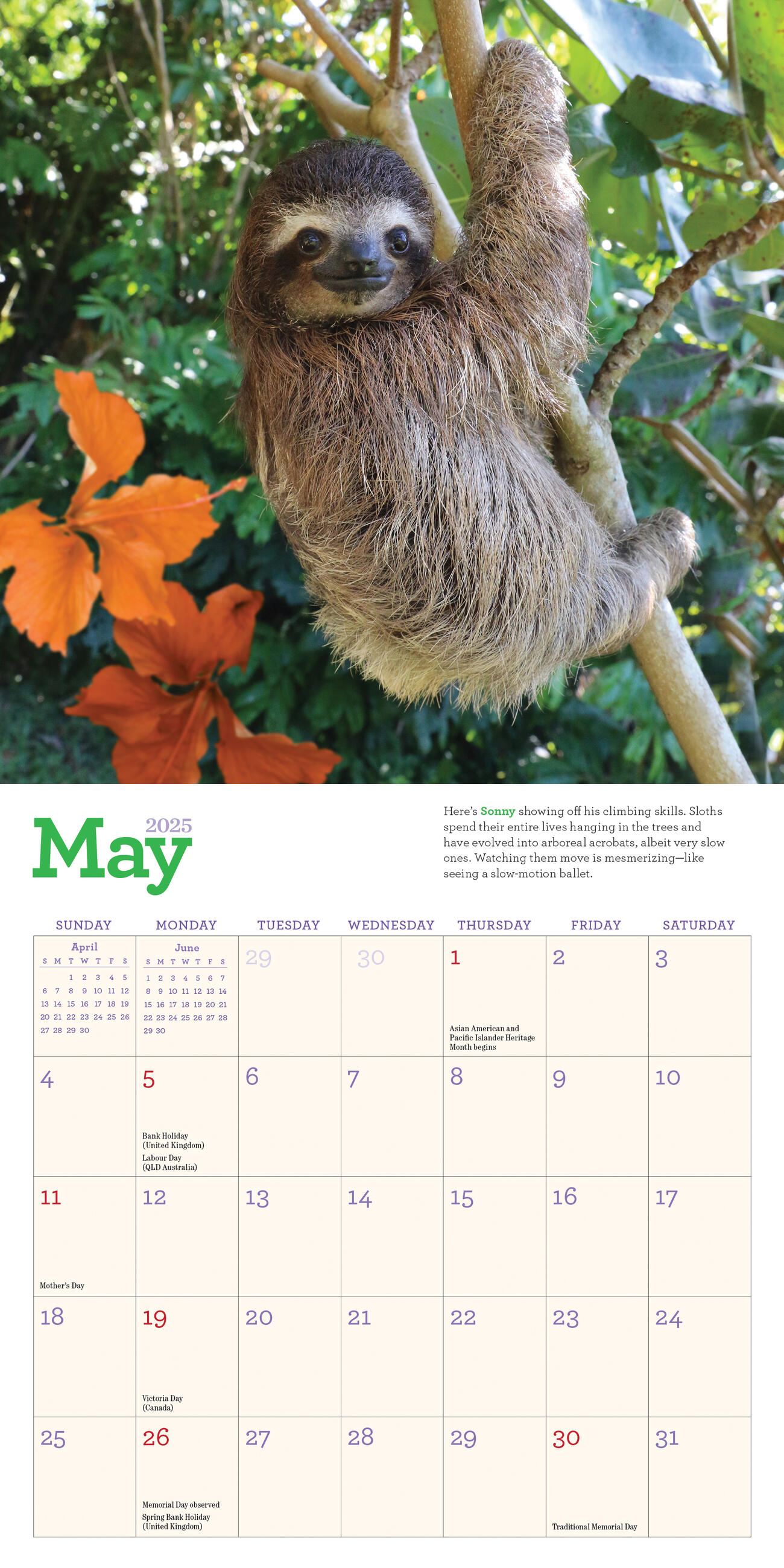 - CANDID CUTENESS: Sloths captured in all their chill charm, hanging in trees, lounging in hammocks and baskets, and cozying up in snuggly little piles. Plus sloth stories and fun facts!