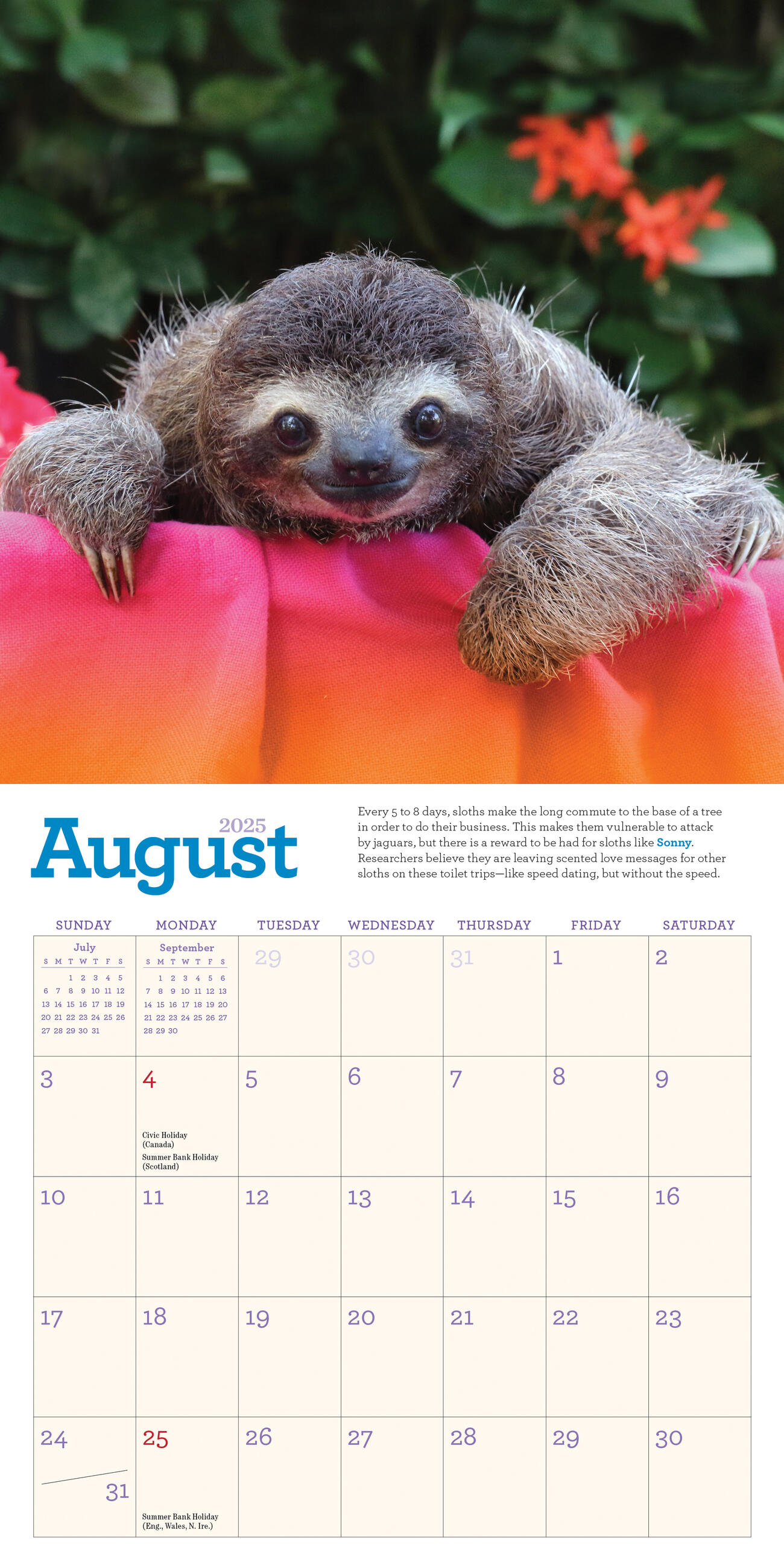 - GREAT GIFT: This mini calendar is great for the sloth lover in your life or anyone who might need a reminder to take it slow throughout the year. The 7” x 7” mini size is perfect for cubicles, lockers, and other small spaces!
