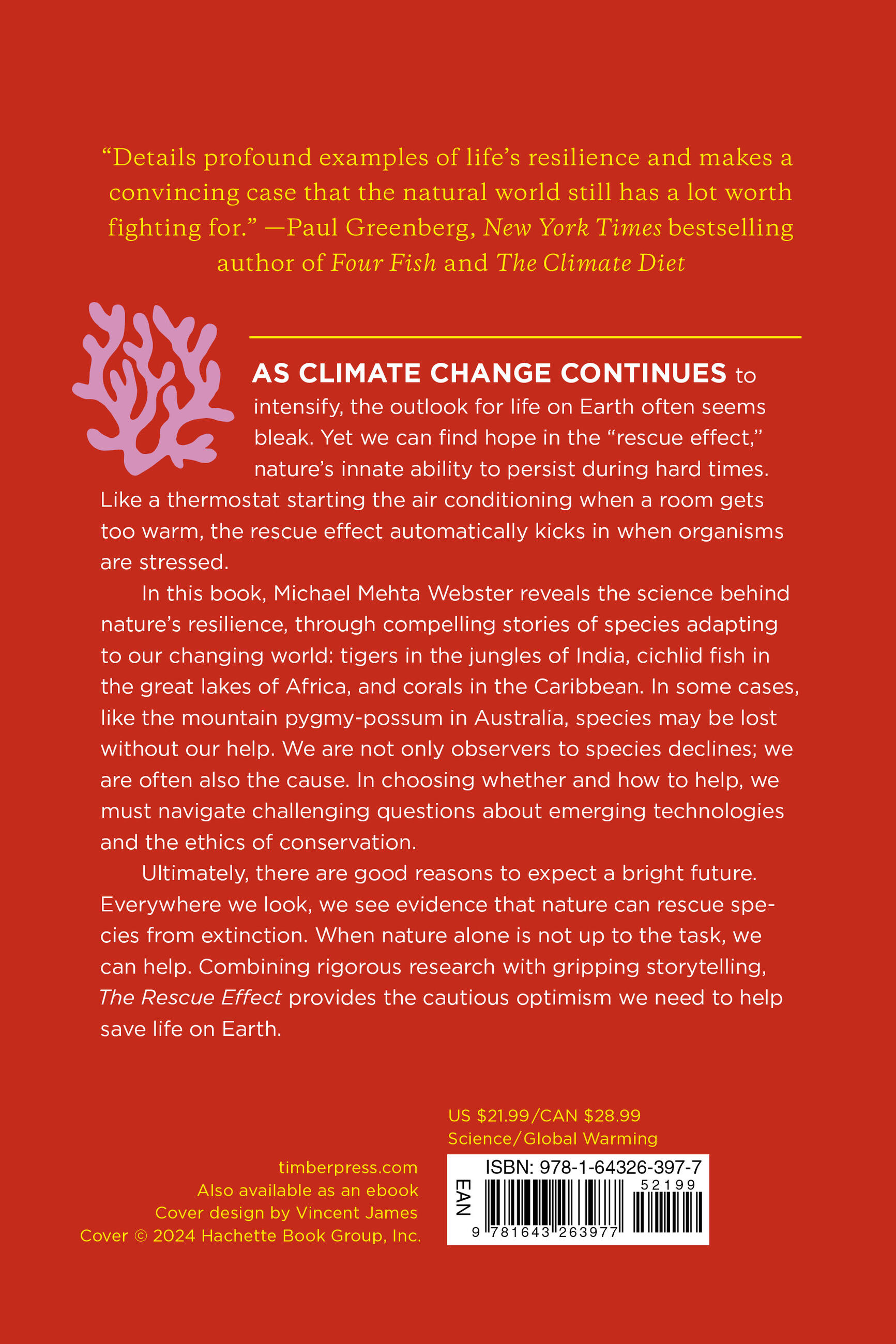 Ultimately, there are good reasons to expect a bright future. Everywhere we look, we see evidence that nature can rescue species from extinction. When nature alone is not up to the task, we can help. Combining rigorous research with gripping storytelling, The Rescue Effect provides the cautious optimism we need to help save life on Earth.