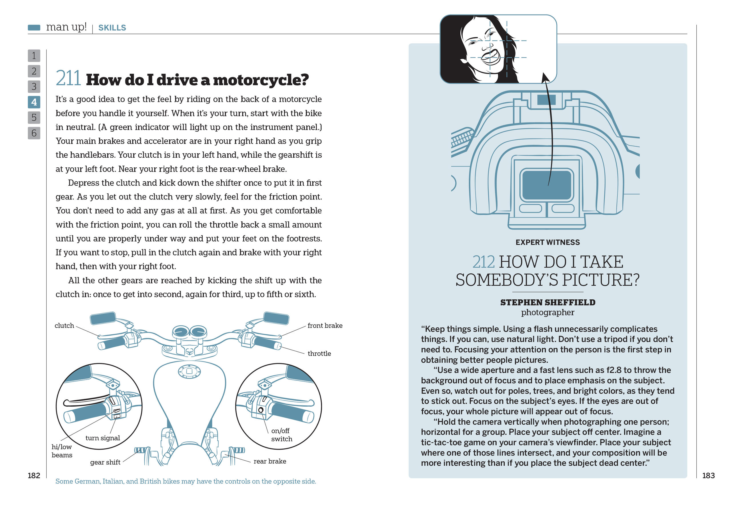 “Quick fixes to the many vexing problems an ordinary dude may wind up facing in his lifetime. From how to change a flat tire to how to survive a night in jail, this guide has the solutions.”