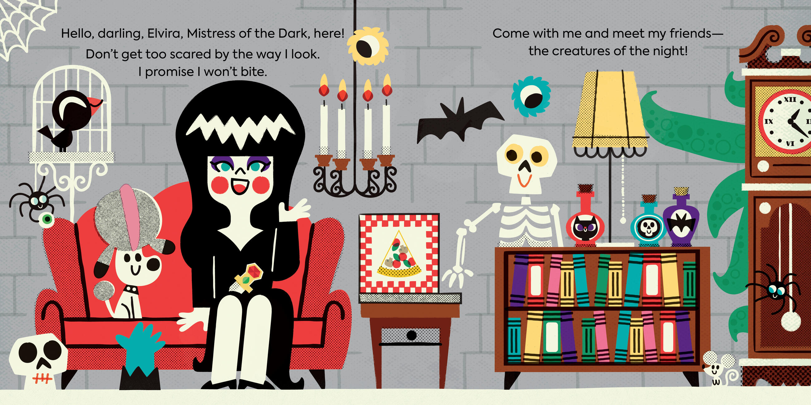 “Hello darling! Tonight we’re going to learn about some of my favorite monsters.” Fans of Elvira, Mistress of the Dark will be “over the moon” reading this delightfully fun and spooky board book. Elvira is on a mission to introduce her favorite classic monster friends—a vampire, a zombie, a witch, a ghost, and more—to young and old alike in this adorably creepy board book. The perfect gift for Elvira fans and collectors, and of course, that special “little monster” in your life.