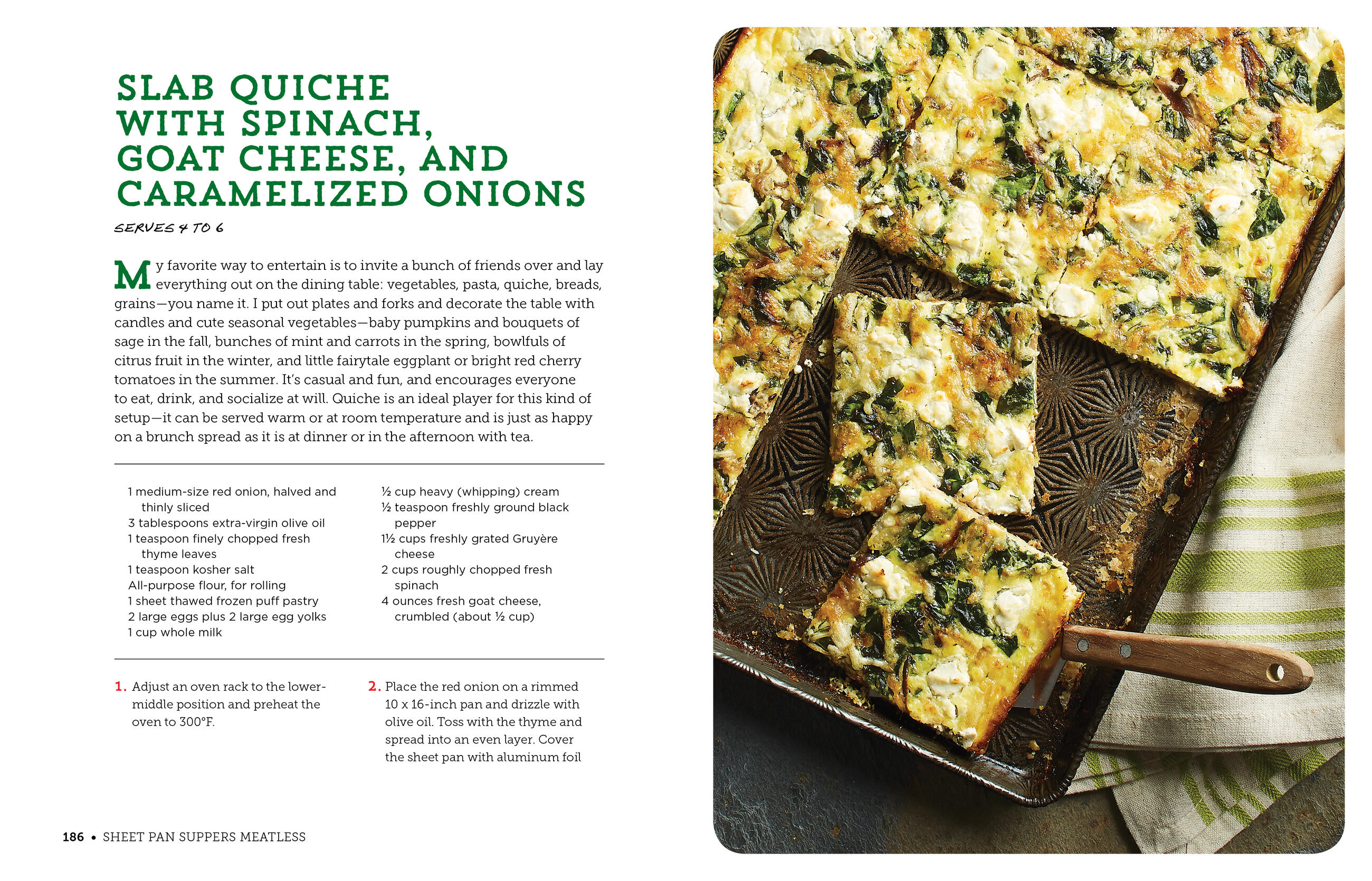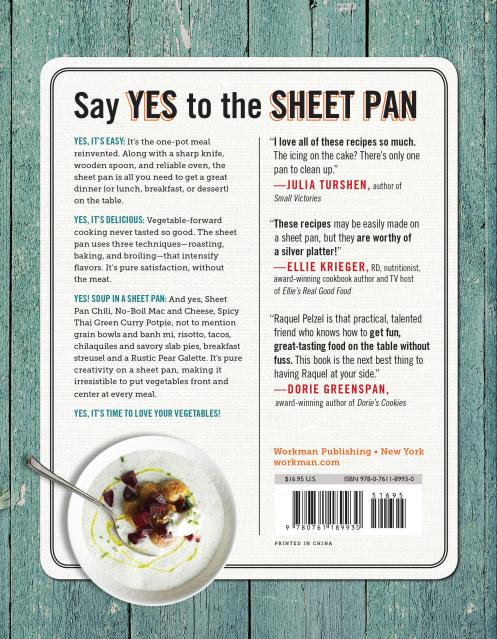 YES, it’s easy: It’s the one-pot meal, reinvented. Along with a sharp knife, a wooden spoon, and a reliable oven, the sheet pan is all you need to get a great dinner (or lunch, breakfast, or dessert) on the table. YES, it’s delicious: The sheet pan uses three techniques – roasting, baking, and broiling – that intensify flavors. It’s pure satisfaction, without the eat. YES! Soup in a sheet pan! And yes, Sheet Pan Chili, No-Boil Mac and Cheese, Spicy Thai Green Curry Potpie, not to mention grian bowls and bahn mi, risotto, tacos, chilaquiles and savory slab pies, breakfast streusel and a Rustic Pear Galette. It’s pure creativity on a sheet pan.