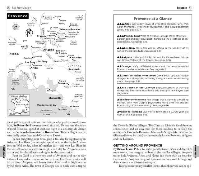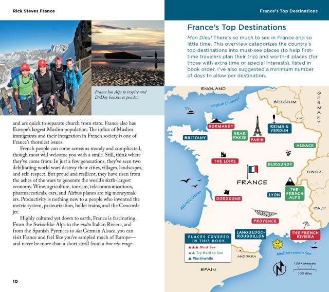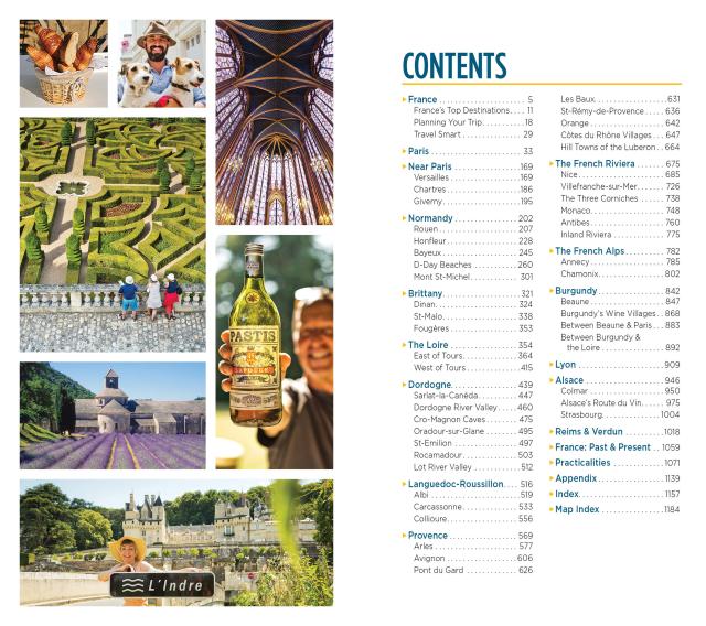 - Coverage of Paris, Chartres, Normandy, Mont St-Michel, Brittany, The Loire, Dordogne, Languedoc-Roussillon, Provence, The French Riviera, Nice, Monaco, The French Alps, Burgundy, Lyon, Alsace, Reims, Verdun, and much more