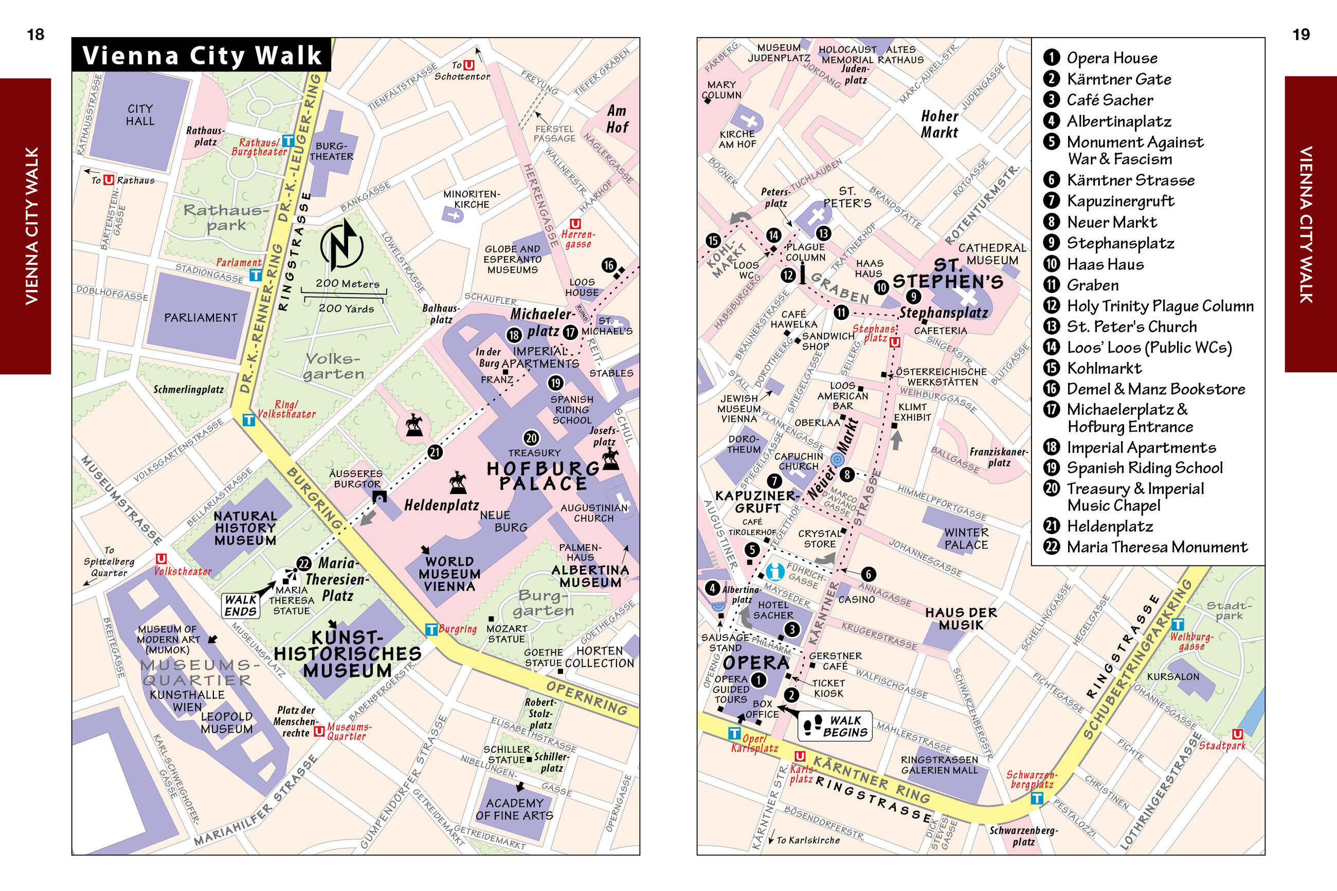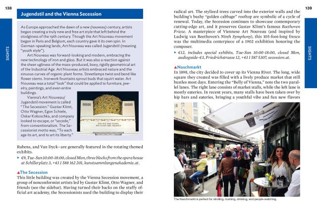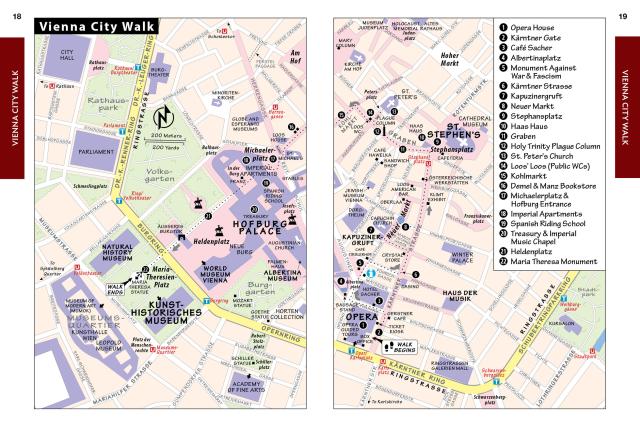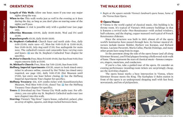 - City walks and tours: Seven detailed self-guided walks including a central Vienna walk, tours of St. Stephen’s Cathedral and Schönbrunn Palace, and more