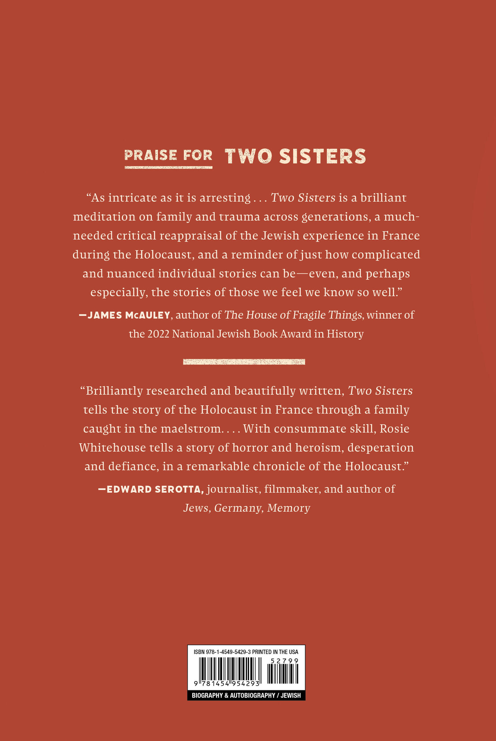 Perfect for fans of WWII biographies and autobiographies, Two Sisters combines careful historical research with the intimacy of a family memoir to deliver a haunting account of survival in Nazi-occupied France. Anyone in search of history books for adults or other true story books will find themselves deeply moved by this remarkable story of courage, sacrifice, and hope.