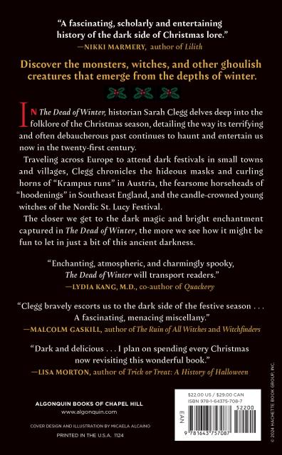 "Sarah Clegg's dark and delicious The Dead of Winter isn't just a frightful and sometimes funny account of Krampus, Mari Lwyd, Christmas ghosts, monster mummers, and a winter witch named St. Lucy, but is also a thoughtful examination of why these stories continue to capture our imagination. I plan on spending every Christmas now revisiting this wonderful book."Lisa Morton, author of Trick or Treat: A History of Halloween