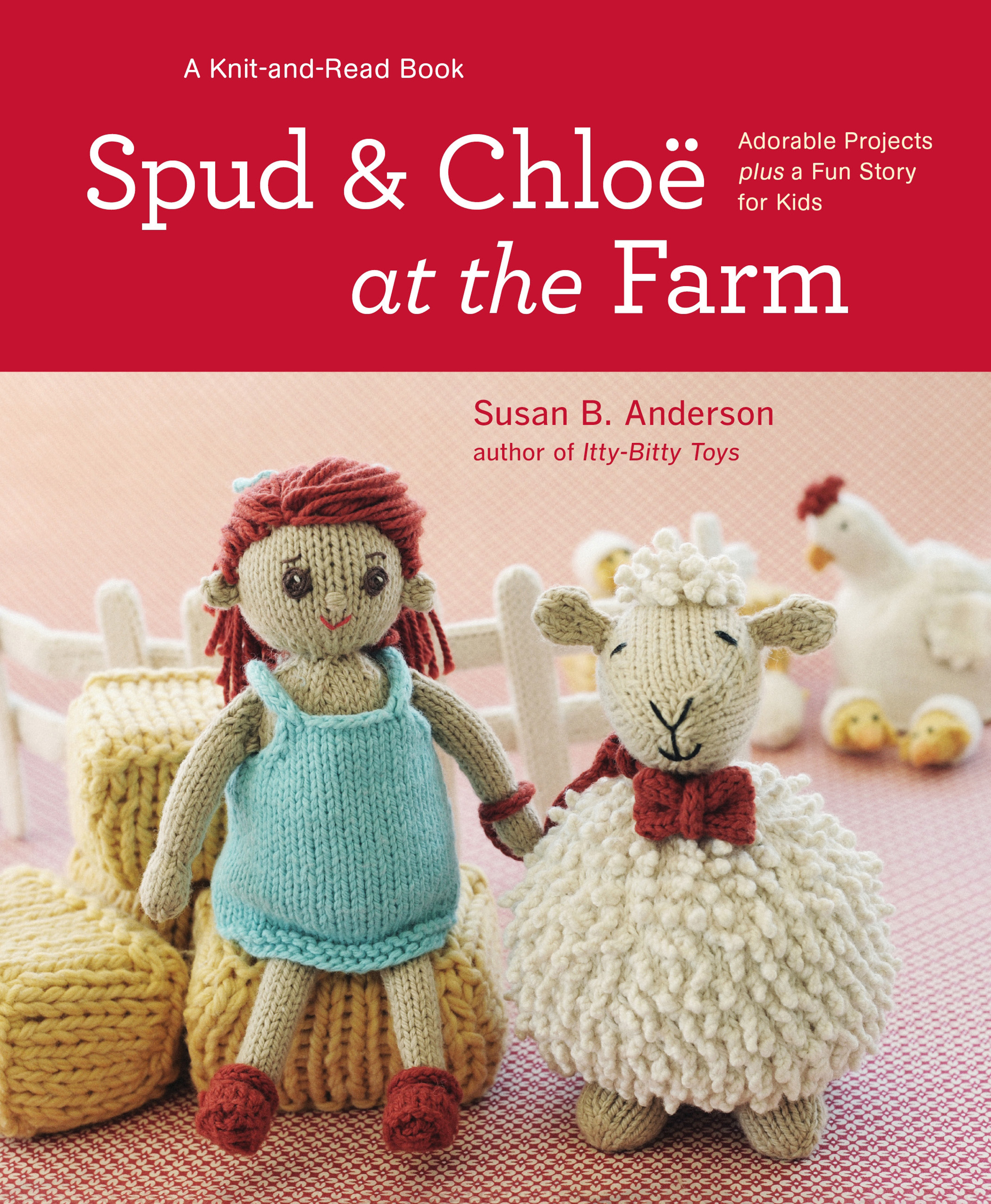 A mother hen and her chicks (and their adorable knitted eggshells), three little piglets, and a black lamb full of good intentions are just some of the appealing projects in Spud and Chloë at the Farm, the latest innovative work from author and world-class knitter Susan B.Anderson. The projects in this book follow Spud, a feisty pet sheep, and Chloë, his perky owner, as they travel to a farm and meet the inhabitants of the barnyard, including a brown cow, some mice, a dog, and a barn cat. To continue the theme, and set the stage for loads of interactive play, the book also offers instructions for making an assortment of farm props, such as a picket fence, bales of hay, dainty baskets, and even a three-sided foldable barn.
