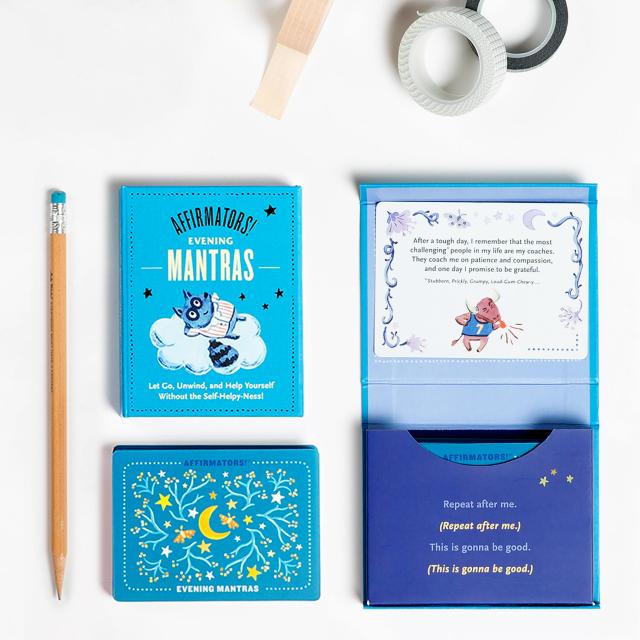 This deck of evening mantras is here to help you chill out, release the day, and stop anxious brain babble in its tracks. Pick a card at random and read it out loud to process the daily hubbub in a healthy, non-stressy sort of way. Repeat as/if/whenever needed! Happier dreams not guaranteed, but 86.5% more probable.