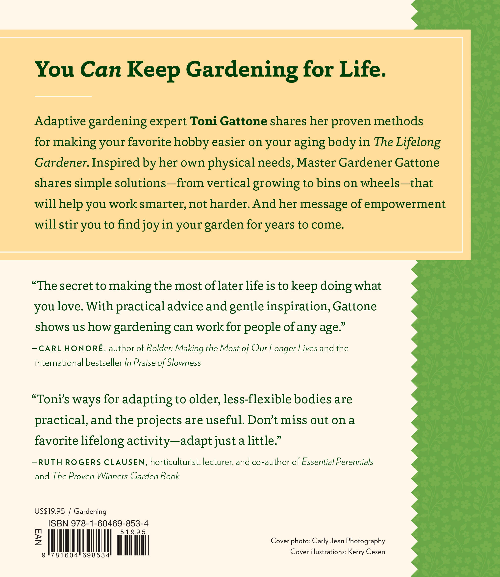 “The secret to making the most of later life is to keep doing what you love. With practical advice and gentle inspiration, Gattone shows us how gardening can work for people of any age.” —Carl Honoré, author of In Praise of Slowness
