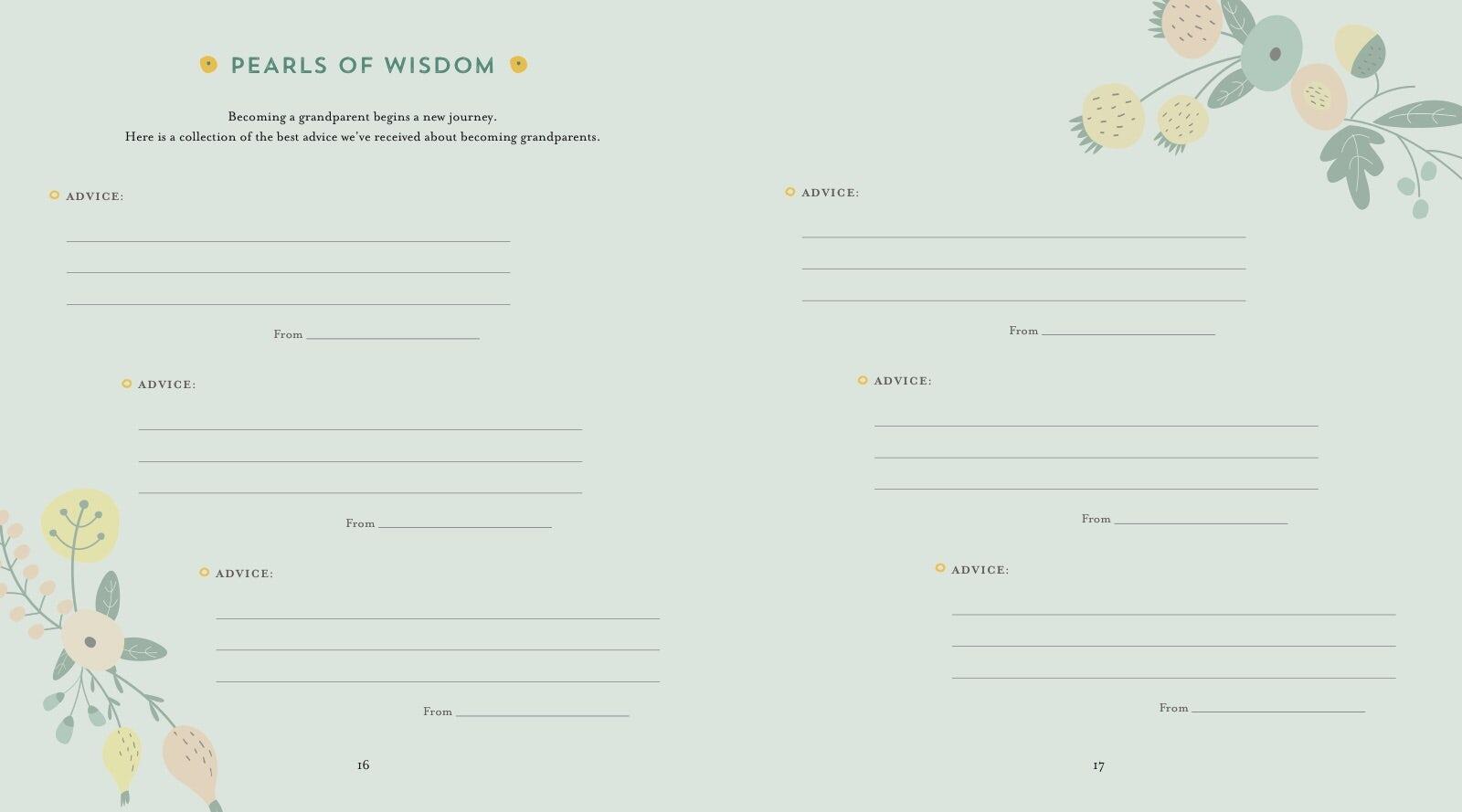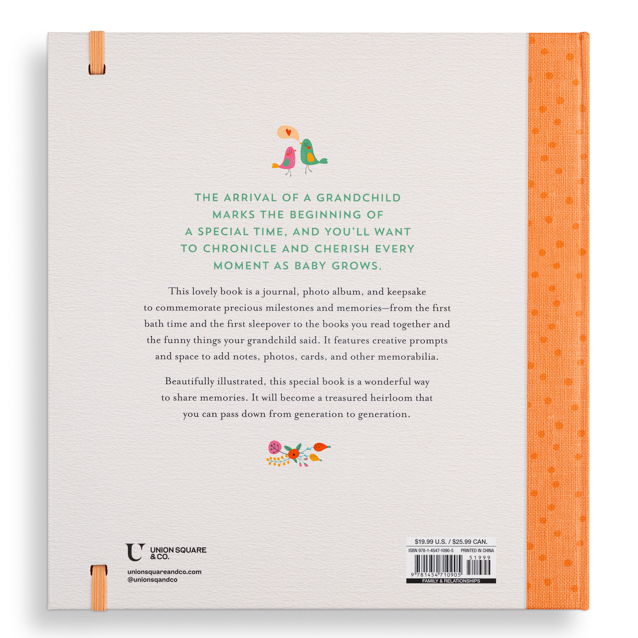 Many grandparents want to chronicle the birth of their grandchild—and capture precious milestones as baby grows. They can record every moment in A Grandparent’s Keepsake Album, from the first bath to the first sleepover to the first holidays. Beautifully illustrated, it offers creative prompts and space for new grandparents to add notes, photographs, cards, and other memorabilia. This special book will become a treasured family heirloom that grandparents can share as their grandchild grows, and pass down from generation to generation.