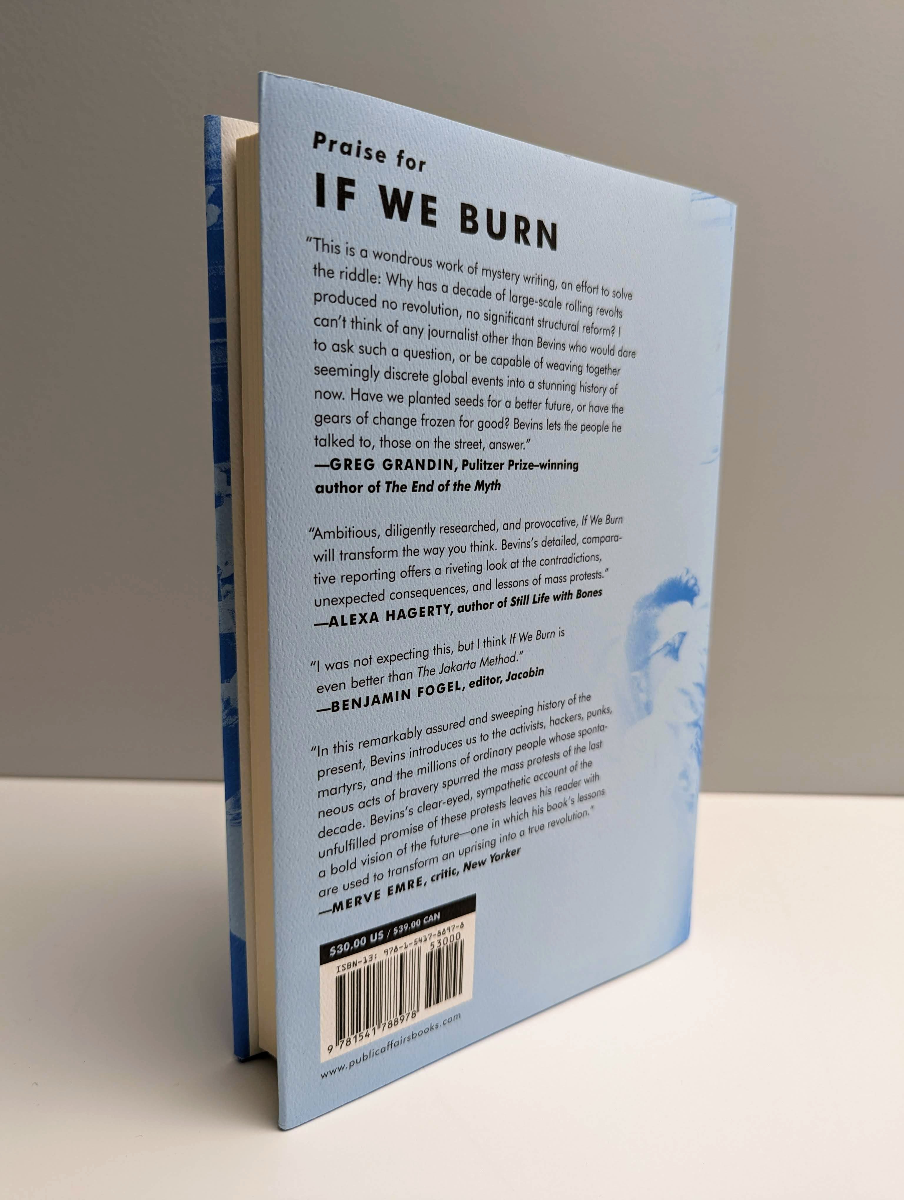 “Bevins is sharp on the way right‑wing TV channels and shadily funded free‑market think tanks sought to shape the reception of this ‘fundamentally illegible eruption of contention’… The lessons that Bevins’s defeated protesters offer at the end of If We Burn bear repeating.”London Review of Books
