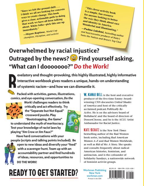 Packed with activities, games, illustrations, comics, and eye-opening conversation, Do the Work! challenges readers to think critically and act effectively. Try the “Separate but Not Equal” crossword puzzle. Play “Bootstrapping, the Game” to understand the myth of meritocracy. Test your knowledge of racist laws by playing “Jim Crow or Jim Faux?”
