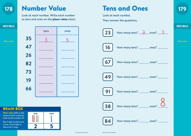 Loved by kids, teacher approved, and trusted by parents, Brain Quest Grade 1 Workbook reviews and reinforces what children are learning in the classroom in an instantly engaging, entertaining way. Each page is jam packed with fun activities, practice exercises, and games covering ABCs, phonics, spelling and vocabulary, time and money, maps, science, and much more.