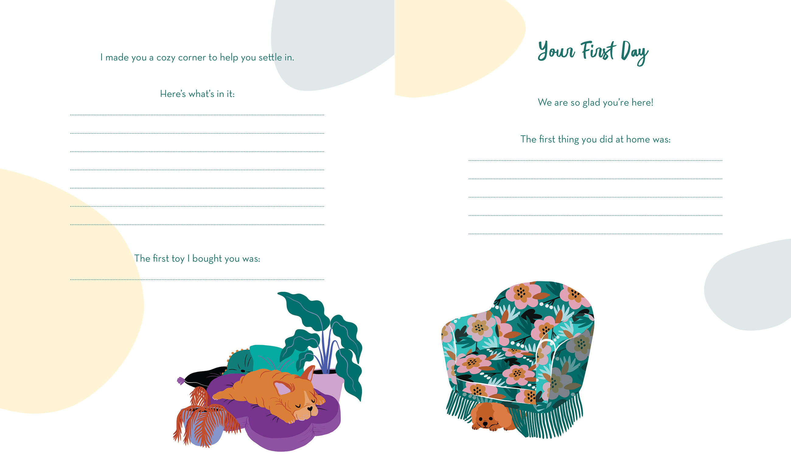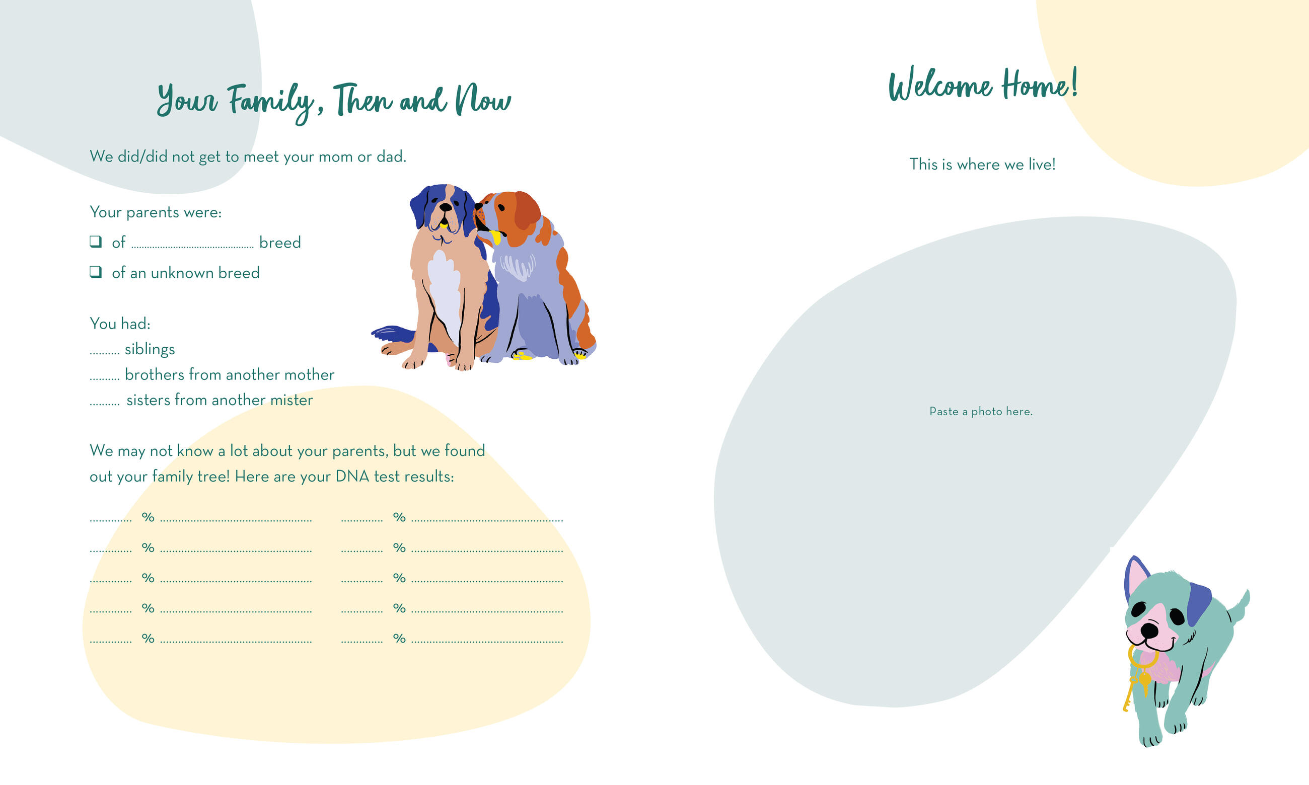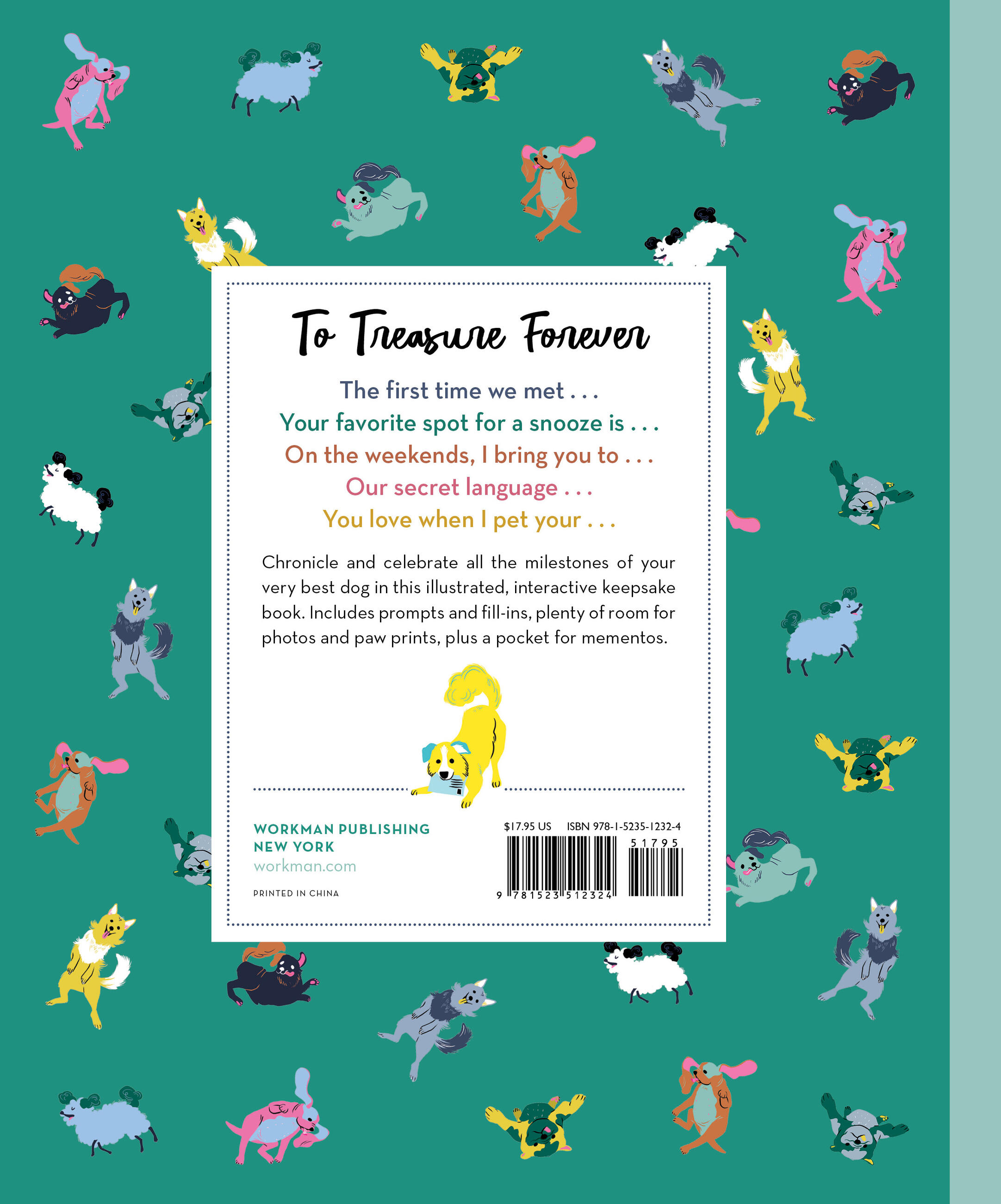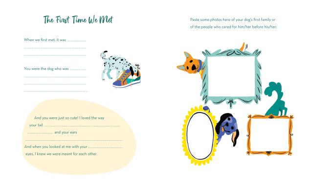 Chronicle and celebrate all the milestones of your very best dog in this illustrated interactive keepsake book. Includes prompts and fill-ins, plenty of room for photos and paw prints, plus a pocket for mementos. Preserve your memories and your dog’s story, from adoption to naming to favorite habits and funny behaviors, with prompts like “The first time we met . . . “ and “Your favorite spot for a snooze is . . . “ and much more. It’s your dog’s life story, as told by you!